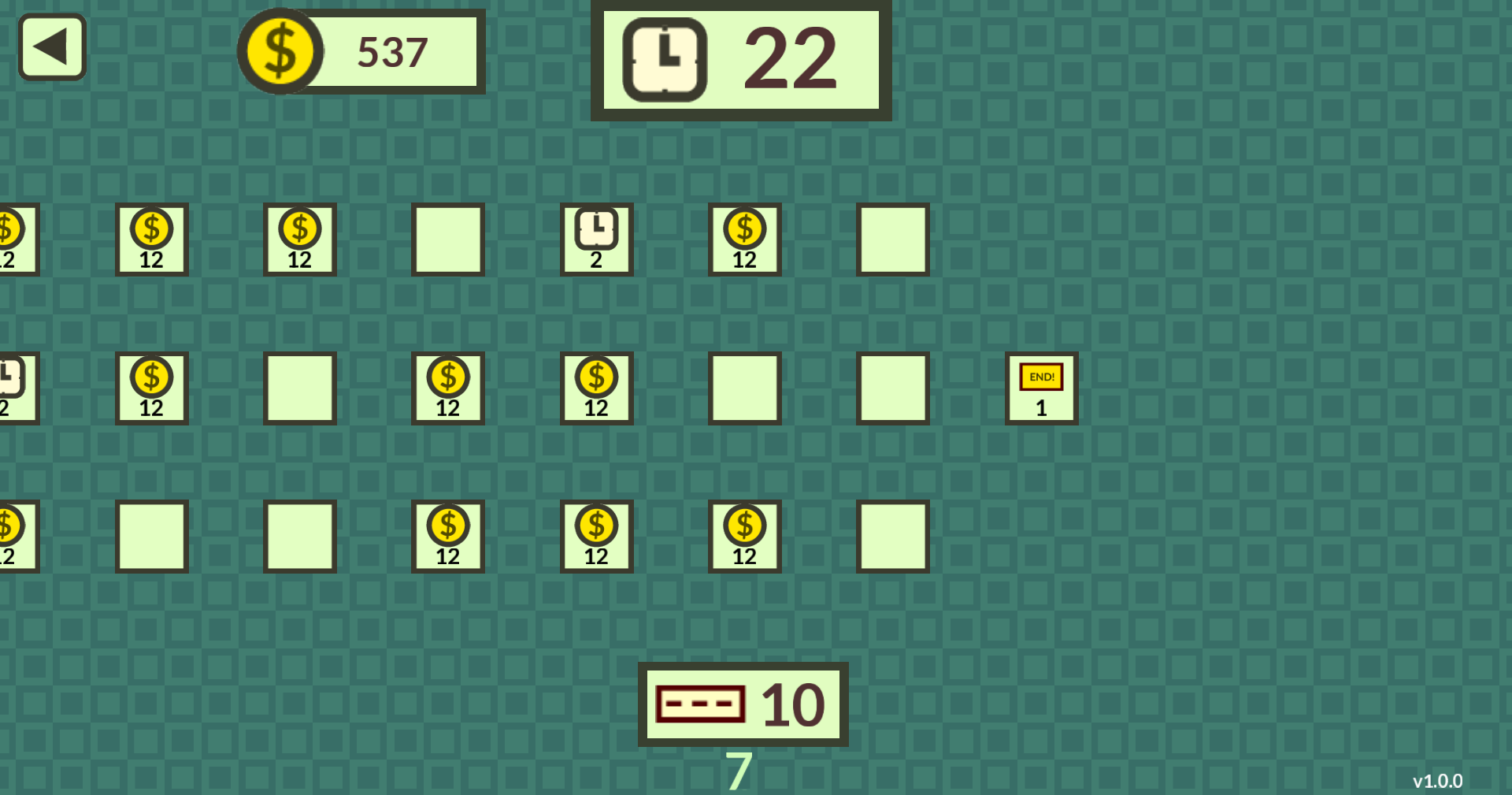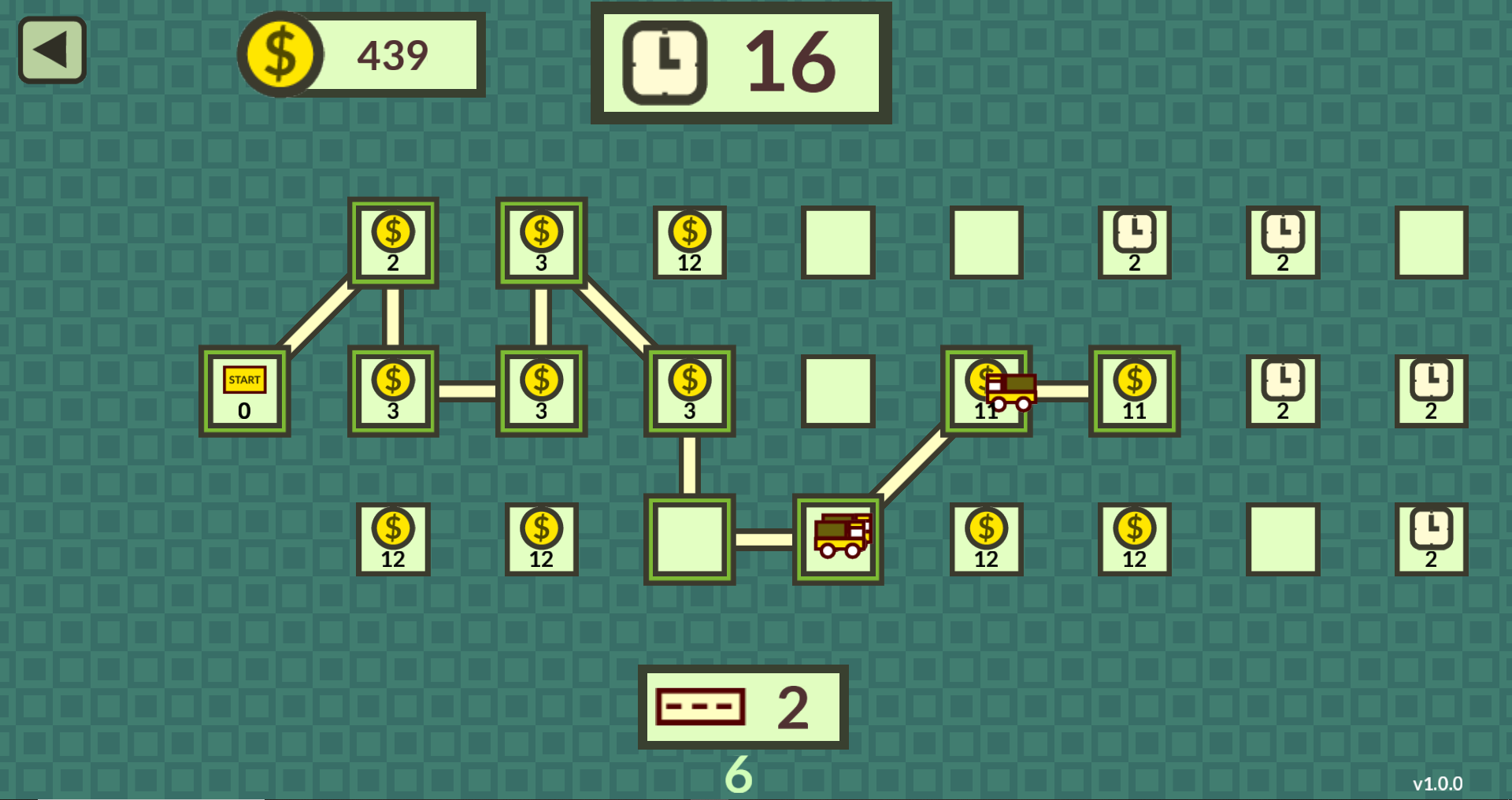 Your goal is to reach the end by connecting islands with bridges. You can connect only already connected islands (or the starting one).